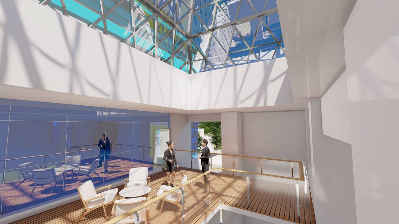Landscape and hardscape elements at the frontage are refined to soften the urban edge, enhance pedestrian comfort, and support intuitive vehicular movement. The overall composition balances corporate identity, urban functionality, and architectural clarity, creating a refreshed face that is both modern and contextually appropriate.