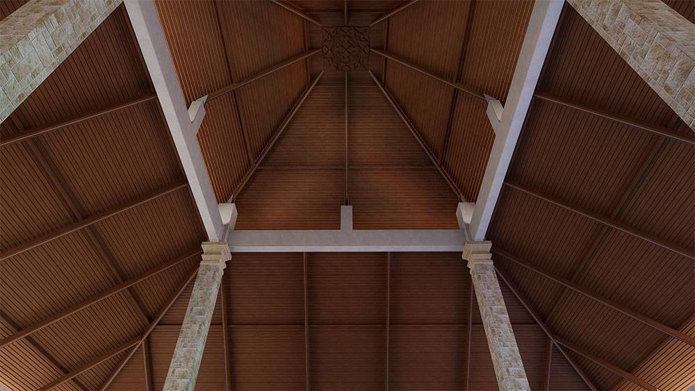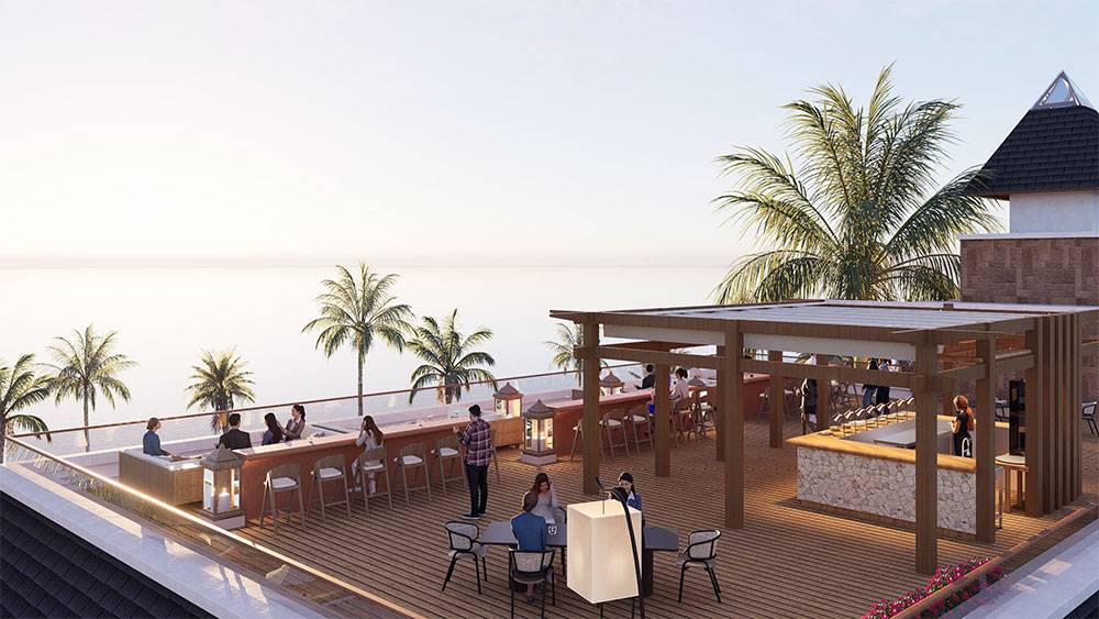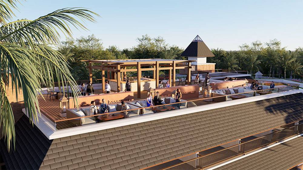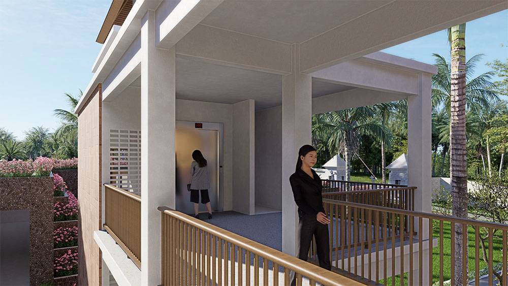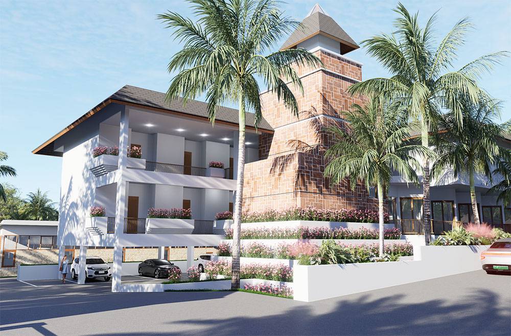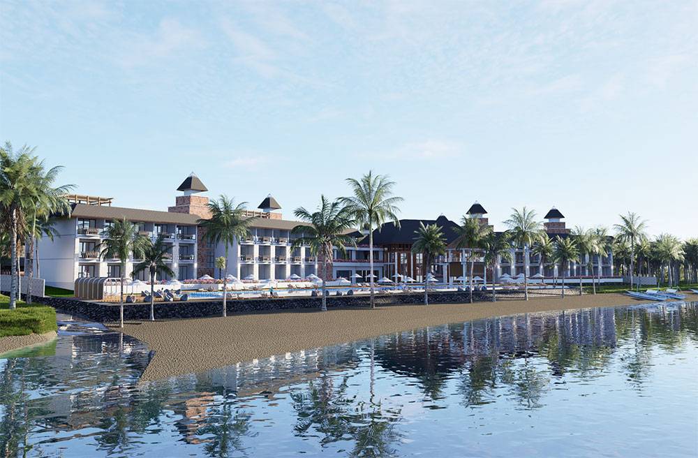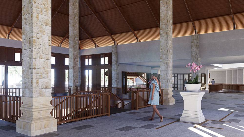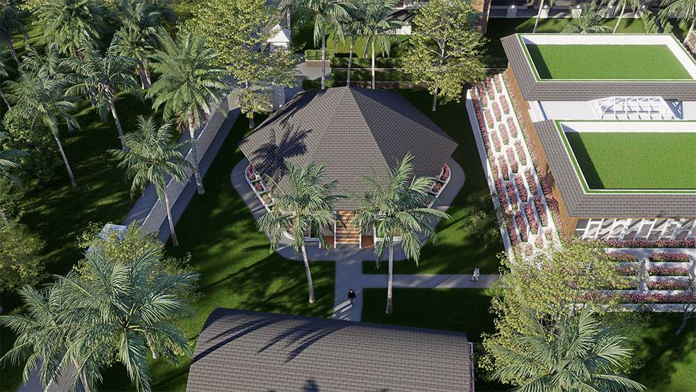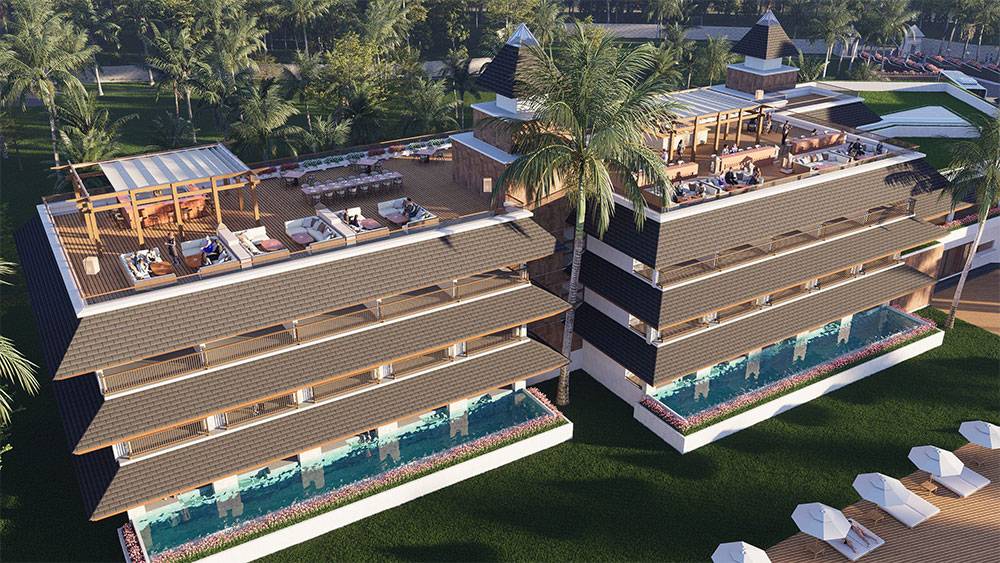 Architecturally, Naau Resort adopts a contemporary tropical language enriched by local material character. Pitched roofs, stone masonry, warm timber accents, and shaded verandas reference vernacular proportions while being interpreted through modern detailing. Building massing is carefully scaled and articulated to avoid visual dominance, ensuring the resort blends naturally with the palm-lined coastline.