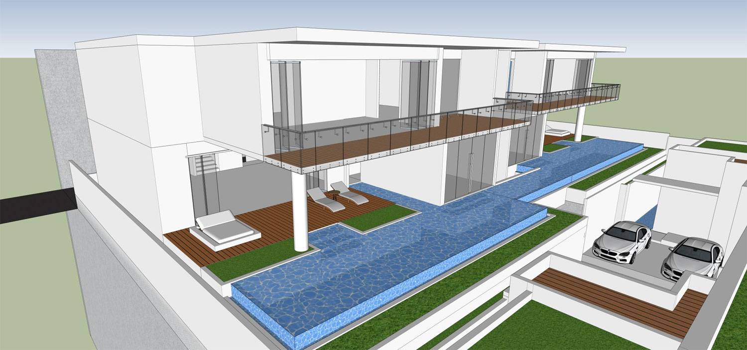 Architecturally, the villas adopt a clean, modern tropical language, characterized by horizontal planes, flat roofs, generous overhangs, and expansive glazing. Upper-level balconies and bridges create visual continuity between volumes, while shaded decks, terraces, and garden pockets reinforce seamless indoor–outdoor living.